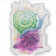 Un caracol vibrante con una concha espiral se representa en colores vivos y contrastantes, resaltando los vivos tonos del caracol.