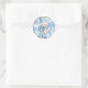 Pequeño y lindo muñeco de nieve usando gorra y bufanda azul claro de invierno y un marco floral de Navidades verde brillante. Gran idea de Navidades para un amante de todo azul.