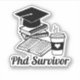 Sobreviviente de doctorado con una taza de café, algunos libros y un birrete de graduación.