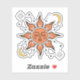 Abraza la belleza celestial del sol y la luna con esta encantadora pegatina de vinilo. Con un diseño caprichoso que incluye un sol dormido, lunas crecientes y estrellas brillantes, esta pegatina añade un toque de magia a cualquier superficie. Perfecta para portátiles, botellas de agua, diarios y más.