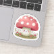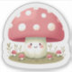 Pegatina de hongos rojo y blanco sonriente.