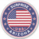 Surprise Arizona, City of Surprise pegatina con bandera de los Estados Unidos, forma redondeada