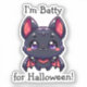 Un adorable murciélago kawaii chibi kawaii personalizó a pegatina de Halloween con el juego de palabras "Soy batty por Halloween".