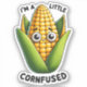 Soy un pequeño Pegatina de Corn Pun divertido. Comida divertida de maíz chibi diciendo pegatina.