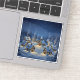 This enchanting sticker features a quaint Christmas Village Scene nestled under a canopy of sparkling, falling snow. The cozy, warm lights spilling from the tiny house windows evoke the true spirit of the holidays. This design is perfect for creating a Winter Wonderland atmosphere on your gifts, cards, or crafting projects. It’s a beautiful, detailed illustration that adds a touch of holiday magic and tranquility.
