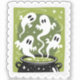 This enchanting postage stamp features four whimsical white ghosts rising playfully from a bubbling black cauldron, set against a vibrant lime green background adorned with twinkling stars and mystical swirls. Perfect for sending magical Halloween greetings, witchy party invitations, or for collectors seeking fun and spirited holiday designs that capture the essence of a spooky brew.