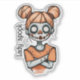 Este es un lindo pegatina de Halloween que presenta a un lindo y espeluznante chica payaso. Puedes personalizar el texto predeterminado "demasiado lindo para hablar".