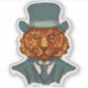 Un tigre vestido con un traje verde azulado y un sombrero de tope pintado con un fondo mudo, dando un aspecto elegante y caprichoso. La expresión seria del animal es enfatizada por el atuendo formal.
