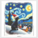 Pegatina Starry Night Festive Christmas Black Cat Santa Hat