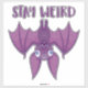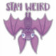 Vector personalizado ilustracion de un murciélago vampiro excéntrico colgando boca abajo con la frase Stay Weird. Palabras clave: animal, murciélago, vuelo, mosca, halloween, mamífero, espeluznante, espeluznante, vampiro, ala, púrpura, inspiración, lindo, tonto, loco, loco, chiflado, divertido, bromista, quédate, raro