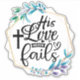 Su Amor Nunca Falla Pegatina. Este hermoso pegatina floral azul es la manera perfecta de mostrar tu fe en Jesucristo. Ya sea que lo uses para decorar tu Biblia, auto o laptop, este pegatina es una manera hermosa y única de mostrar tu devoción. Los símbolos de cruz y bautismo en el centro de la corona son poderosos recordatorios del sacrificio y el amor de Jesucristo. ¡Ordene ahora a este pegatina y muestre su fe para que todos la vean!