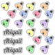 Adorable mujer brillante bichos con alas de polka salpicadas en un arcoiris de colores que incluyen azul, violeta, rosa, naranja, amarillo y verde. Personaliza con el nombre que elijas.