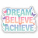 Encienda una mentalidad más brillante con este pegatina inspirador "Sueño, crea, logra" que presenta mariposas brillantes y coloridas y letras motivacionales. Esta alegre obra de arte fomenta la atención, el amor propio y el crecimiento personal, lo que lo convierte en un regalo perfecto o un recordatorio personal para mantenerse positivo y difundir buenas vibraciones. Este diseño inspirado en la mariposa aporta belleza y aliento a la vida cotidiana.