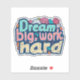 Manténgase inspirado con nuestro pegatina Dream Big Work, el impulso diario perfecto para soñadores y hacedores. Hecho de vinilo duradero e impermeable, se pega a laptops, botellas, revistas y más. Negrita, elegante y motivacional — ¡es un pequeño pegatina con un gran mensaje!