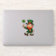 Este leprechaun prueba que los irlandeses tienen suerte, encontrando y exhibiendo su trébol de cuatro hojas.