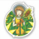 Un chica en un campo de girasoles en una cálida tarde de verano.