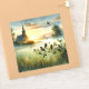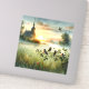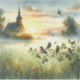 Pegatina Sunrise Church with Birds in Misty Meadow No Verse
