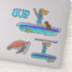 Divertidos stickers con forma de SUP con mis diseños ilustrados. Chica de paddle de remo con temática tropical con su perro y una gran tortuga marina. Stickers artísticos que se pueden utilizar para el cumpleaños de verano de una adolescente, o fiesta de agua de verano con amigos. O agregue los stickers a las cubiertas de los libros, carpetas escolares o papel de regalo.