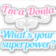 Un hermoso regalo de doula que dice que soy un Doula, ¿Cuál es tu superpoder? Este lindo regalo presenta escritura rosa y verde azulada con un florecimiento plateado para algo de encanto adicional para una ayuda natural al parto.