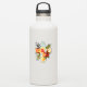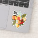Pegatina de laptops con tabla de surf y hojas tropicales y flores con texto, "Surf's up".