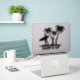 El surf inspiró a un gran pegatina de fondo de una silueta negra de un surfista, con una tabla de surf y palmeras. Texto gráfico negro que dice Surf's Up.