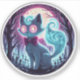 Un gato fantasmal con ojos brillantes, con una linda corbata. Diseño en forma circular. Ideal para los amantes del gato.