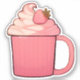 Un simple tazón rosa adorable con crema blanqueada y fresa fresca. Un pegatina agradable y acogedor.