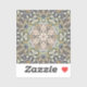 A symmetrical, kaleidoscopic design forms the centerpiece, with intricate, interconnected shapes and muted colors creating a harmonious pattern. The radial symmetry and organic shapes evoke a sense of depth and complexity.
