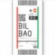 Diseño pegatina basado en una tarjeta de embarque a Bilbao, País Vasco.