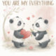 Una adorable tarjeta acuática con dos bonitos pandas sosteniendo un corazón. Perfecto para el Día de San Valentín, aniversarios o confesar tu amor.