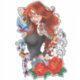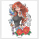 Una mujer de cabello rojo con un tanque gris y vaqueros azul denim. Tiene dos mangas de tatuajes de brazo completo. Todo dibujado en un nuevo estilo escolar de historietas.