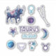 Celebrate the grounded, steady strength of Taurus with this beautifully detailed zodiac sticker collection. Featuring celestial artwork of the Bull, the Taurus constellation, zodiac symbol, Earth element symbol, and Venus ruling planet symbol, this design is surrounded by dreamy moons, planets and stars for a magical cosmic feel.