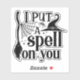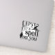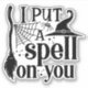 Este clásico diseño de Halloween presenta la espeluznante frase "Te pongo un hechizo" en una letra audaz de inspiración gótica. El blanco y el negro crean un ambiente sobrio, por lo que el diseño es perfecto para la temporada de Halloween. Acompañando el texto hay elementos de bruja icónica, incluyendo un gorra de bruja puntiaguda, un palo de escoba, una telaraña y una araña diminuta, todos dispuestos para crear una composición fascinante. El sutil detalle de los puntos alrededor del texto añade un toque de encanto mágico.