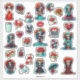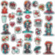 Pegatina Teal Red Roses Sugar Skull