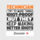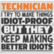 Funny Technician Dice "Técnico Intento Hacer Que Las Cosas Sean Pruebas Idiotas Pero Siguen Haciendo Mejores Idiotas". Agarra este diseño de Funny Technician como regalos graciosos para una mamá, papá o amigo formidable.