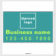 Rectangle gran pegatina vinílico que usted puede personalizar para que los clientes encuentren fácilmente su número de teléfono comercial cuando necesiten llamarle para realizar sus pedidos o preguntar sobre sus productos o servicios. Puede utilizarlo como material de marketing para promocionar su negocio o promocionar su marca a los clientes. También puede utilizarlo como etiqueta de producto para cajas grandes. El color es verde azulado. El color de fuente es verde amarillo. Para personalizar de este pegatina, cargue el logotipo de su empresa, escriba su nombre de negocio y número de teléfono. Después de cargar el logotipo y escribir los textos, compruebe la apariencia. Si el aspecto le gusta, puede realizar su pedido ahora. Si necesita cambiar el tamaño y mover el logotipo y los textos para que encajen en este pegatina o en otros tamaños que elija, por favor cambie la herramienta de diseño. También puede realizar otros cambios según sus preferencias en la herramienta de diseño, como cambiar el color del pegatina y las fuentes.