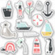 Piezas de doodle con temática personalizado en el lado del océano: 14 imágenes diferentes, incluyendo 3 botes, una flor, un caracol, ancla, un marino, olas, tortuga, palmera, marinero, faro y pingüino.