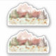 Elegante pegatina del paisaje montañoso color terracota con flores silvestres y pinos.