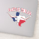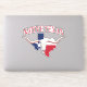 Muestra tu orgullo en Texas con este destacado pegatina de un cráneo de Longhorn que sobrepasa el gran estado de Texas.