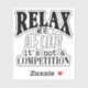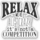 Funny laptop o laptop pegatina con texto negro, "Relájate, estamos todos locos. No es una competencia". Contáctenos para solicitar productos coincidentes. Ideal para botellas de agua, estuches de teléfono, bicicletas, patinetas o cualquier otra cosa que puedas imaginar.