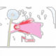 Chica pelirrojo agarrando un diente de león en una fuerte brisa al personalizar con su propio saludo, nombre, mensaje, etc