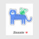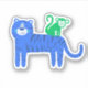 Tigre azul con mono verde en su Pegatina portátil de espalda. Divertido y alegre. Esta combinación de animales te hará sonreír.