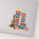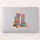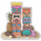 pegatina de vinilo cortado por personalizados con una imagen de dos coloridos tótems de tiki de madera, un lei de orquídea, una piña, un montón de uvas, una rodaja de limón y conchas variadas. Ver toda la colección de Pegatinas de Shipwreck en INVITES | Sección Pegatinas y etiquetas.