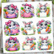 Pegatinas de Titulares de Letrero de Conejo de Pascua. © Pick a Sticker. Estas adorables pegatinas de conejos de Pascua están sosteniendo letreros donde puedes poner tu propio mensaje.