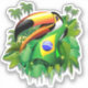 Toco brasileño en selva tropical, vestido con bufanda con colores de bandera brasileña. ¡Por los amantes de Brasil y por los simpatizantes del Mundial de Fútbol Brasil 2014! Arte vectorial original Derechos de autor AzulArt ElChameleonArt