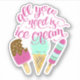 Pegatina Todo lo que necesitas es helado crema dulce y vini