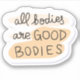 Impresionante pegatina de positividad corporal con la leyenda "Todos los cuerpos son buenos cuerpos". Grandes pegatinas de vinilo impermeables para todos los que quieren fortalecerse para cultivarse el amor propio.