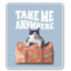 Diseño de amante de los gatos de Guay que incluye un gato en una maleta y la cita "Llévame a cualquier parte".