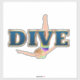 Get these vinyl stickers in die cut shapes for the springboard, platform, or swim race diver, or fan with this Dive slogan and female diving design. Great for your home, pool, or dorm.
