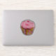Ilustracion detallado de un bizcocho de fresa con helado de fresa rosa pastel